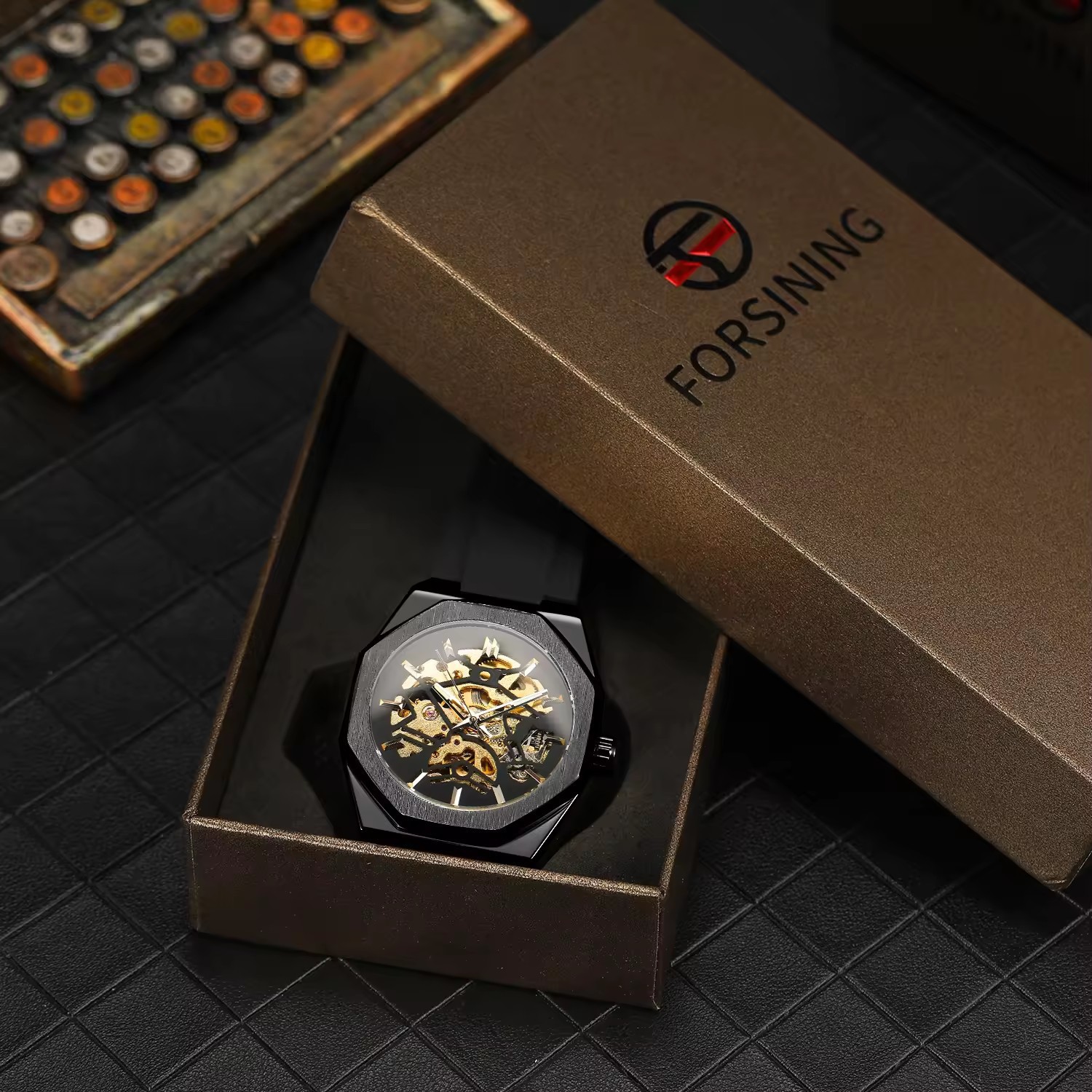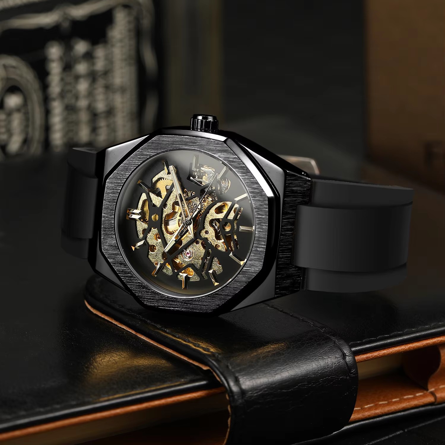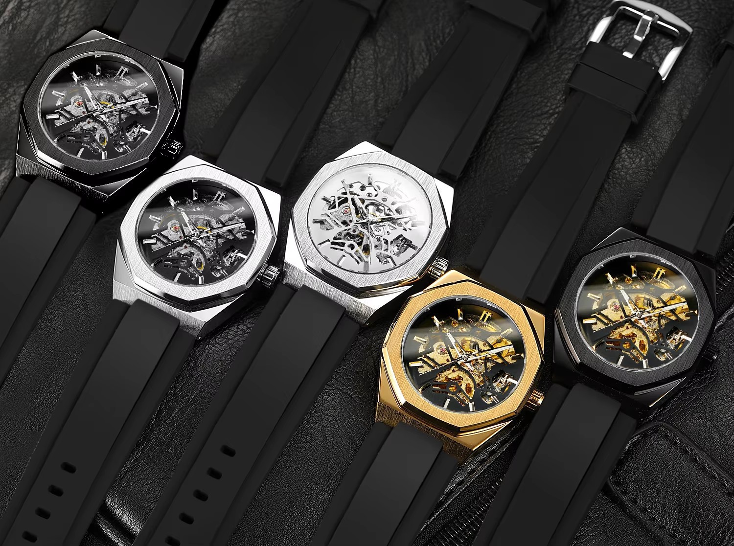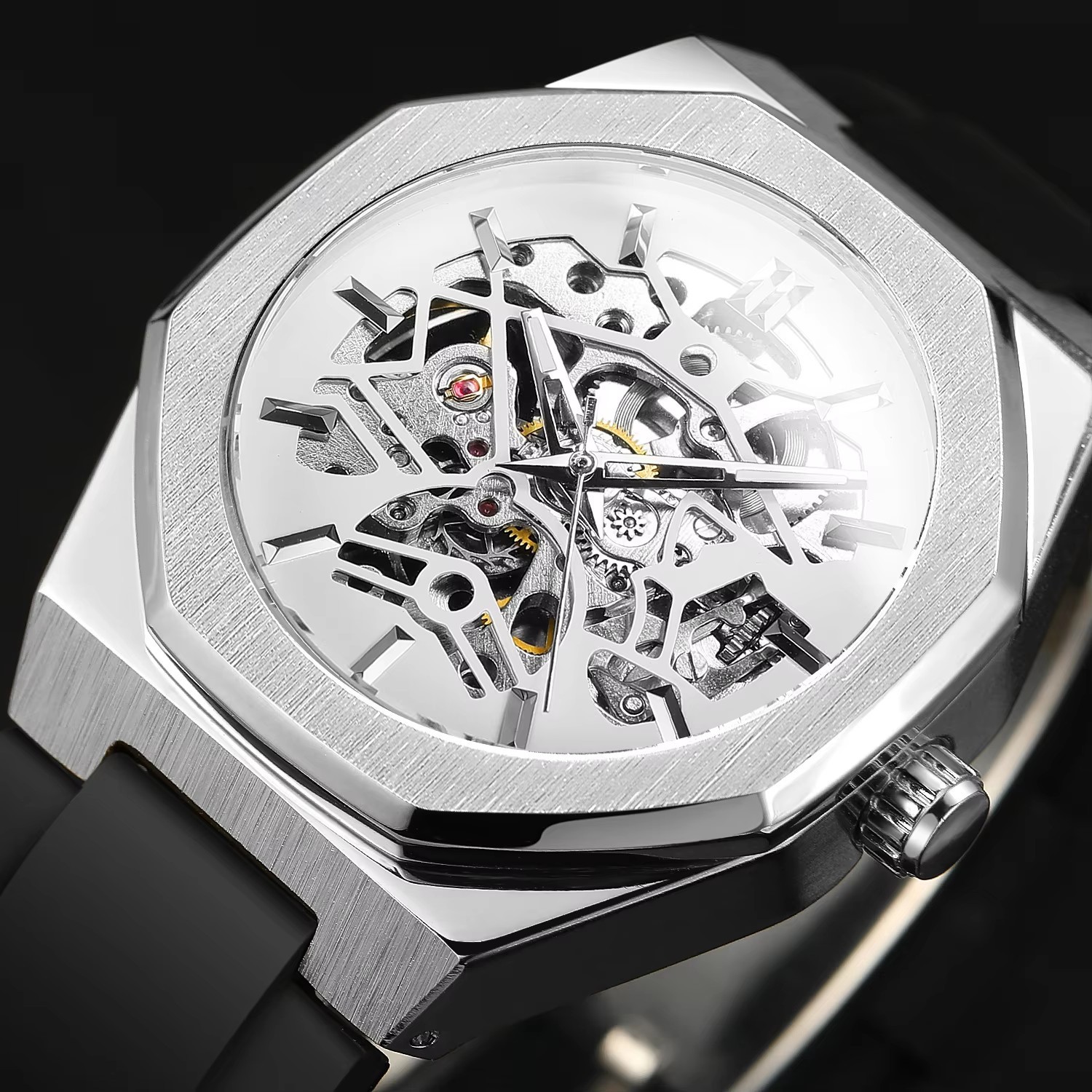 Automatic Mechanical Watch With A Rubber Strap