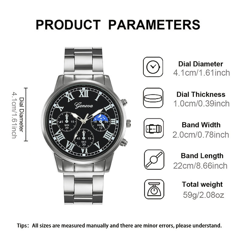 Mens Quartz Watch Necklace Bracelet And Ring 4-Piece Set