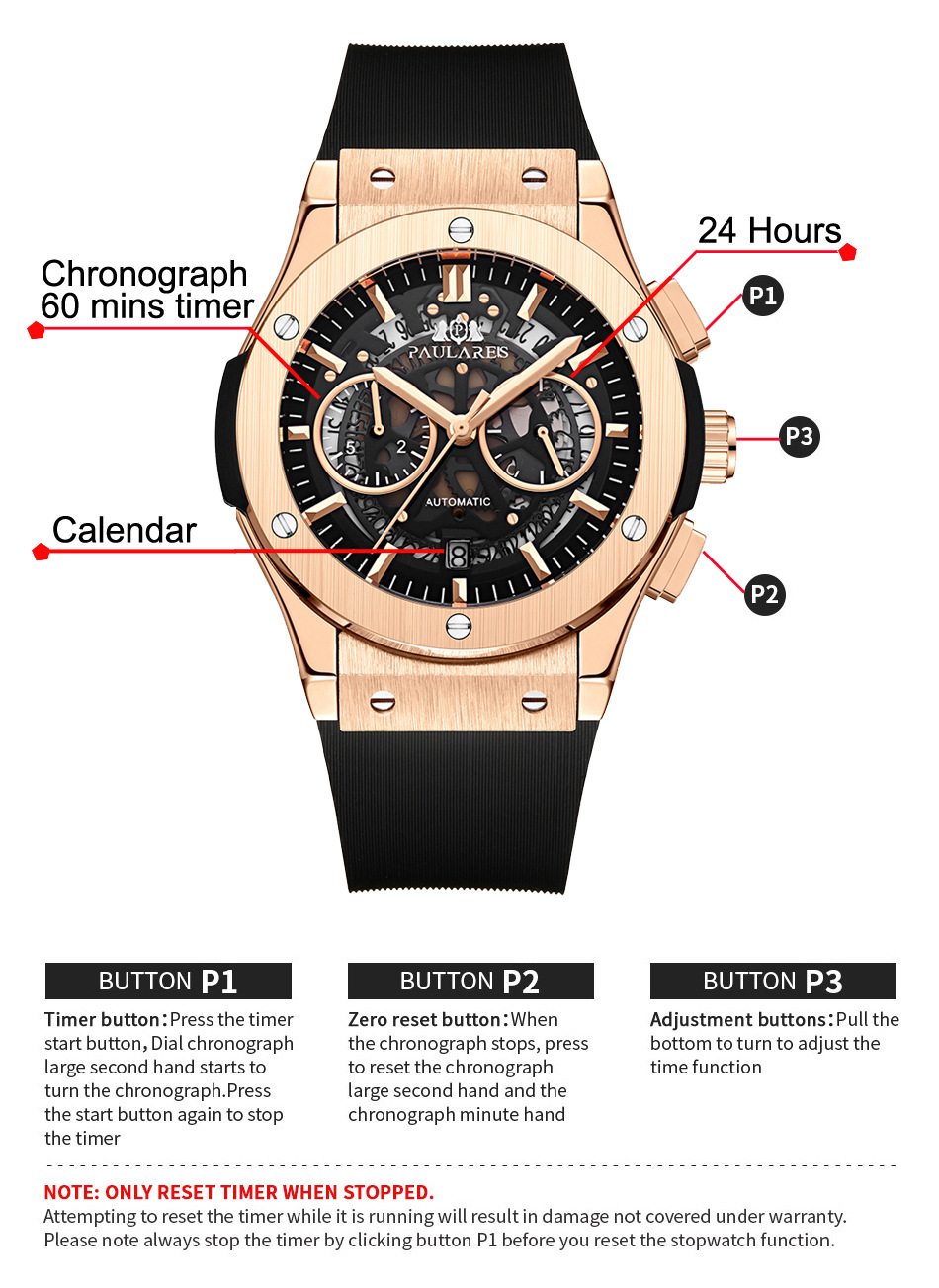 Multifunctional Rubber-Strap Quartz Stopwatch Mens Watch