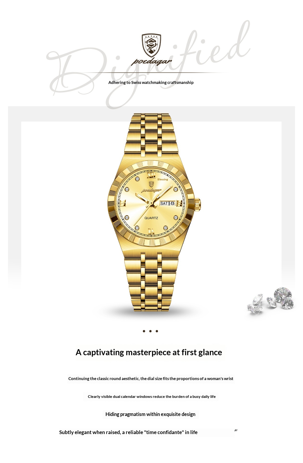 Womens Diamond-studded Waterproof Luminous Fashionable Quartz Watch